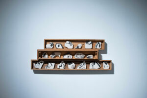 “My practice is mainly collage-making, but for this exhibition it transformed into object-making,” she added, noting that her goal is for the works to resonate with people who may see their own personal memories in the collection of items.