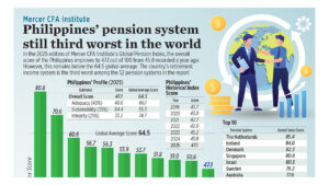 THE PHILIPPINES’ pension system remained the third worst in the world, according to the 2025 edition of Mercer CFA Institute’s Global Pension Index. Read the full story.