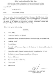 SLMC Bonifacio Global City MAB Corp. to hold Annual Stockholders’ Meeting on Nov. 7 via teleconference – BusinessWorld Online