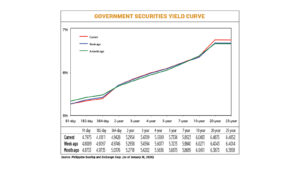 GS yields, which move opposite to prices, went up by an average of 1.48 basis points (bps) week on week, based on the PHP Bloomberg Valuation Service (BVAL) Reference Rates as of Jan. 16 published on the Philippine Dealing System’s website.